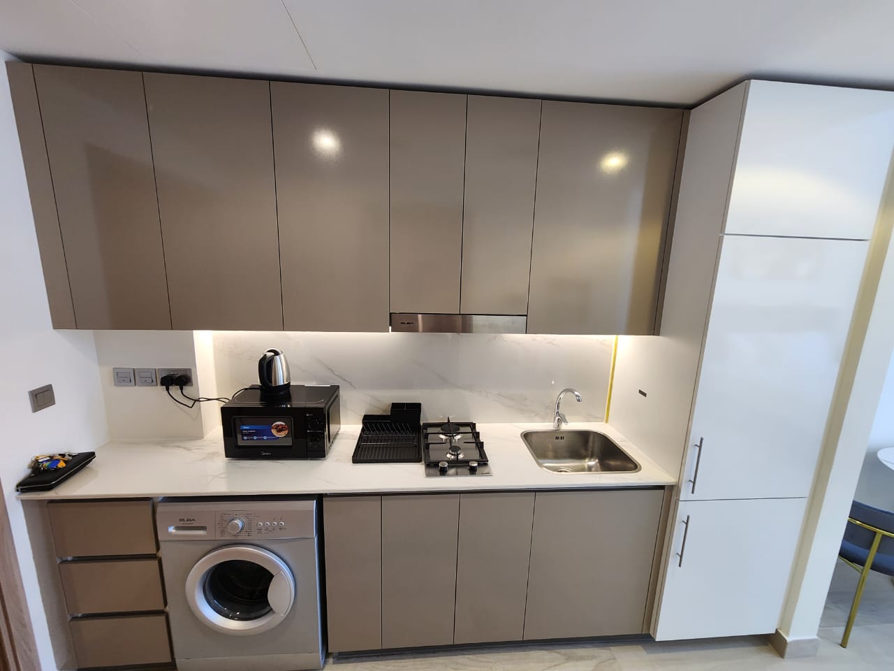 - Kitchen: Fully fitted with built-in appliances